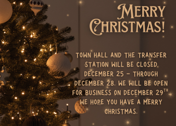 Town Hall and the Transfer Station will be closed on Thursday, Friday and Saturday, December…