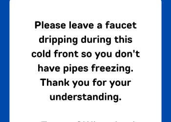 Remember to leave a faucet dripping during the cold snap to prevent damaged pipes and…